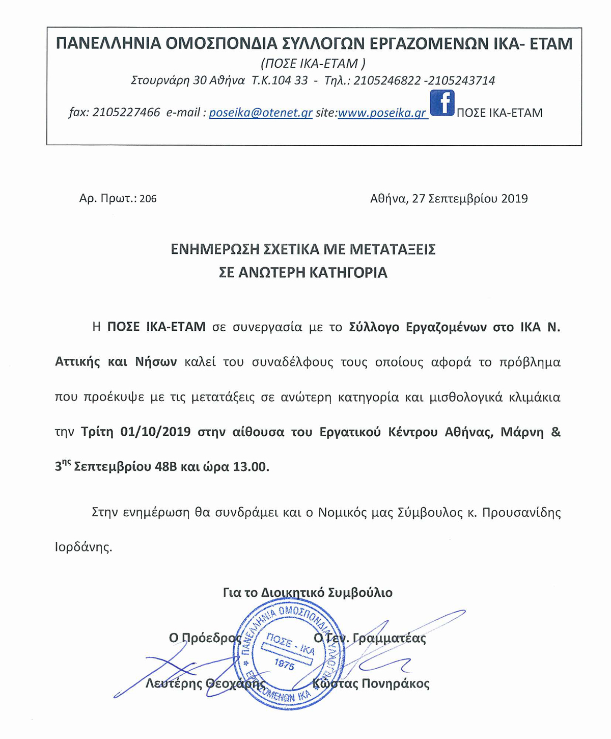 ΕΝΗΜΕΡΩΣΗ ΓΙΑ ΤΙΣ ΜΕΤΑΤΑΞΕΙΣ ΣΕ ΑΝΩΤΕΡΗ ΚΑΤΗΓΟΡΙΑ